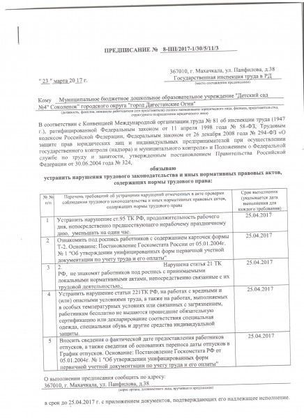 Предписание 141102 Документ подписан электронной подписью Серийный номер 603332450510203670830559428146817986133868575834 Заведующий Аллахвердиева Назиля Уруджбековна Дата подписания документа 11.03.2021 14:32:52 (скачать) (посмотреть)